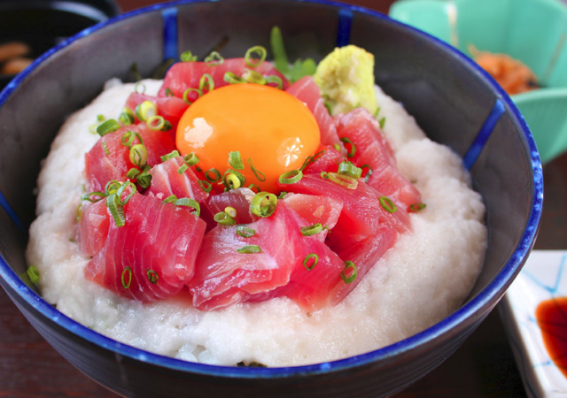Rice bowl topped with diced tuna and grated Chinese yams grown in Yuni