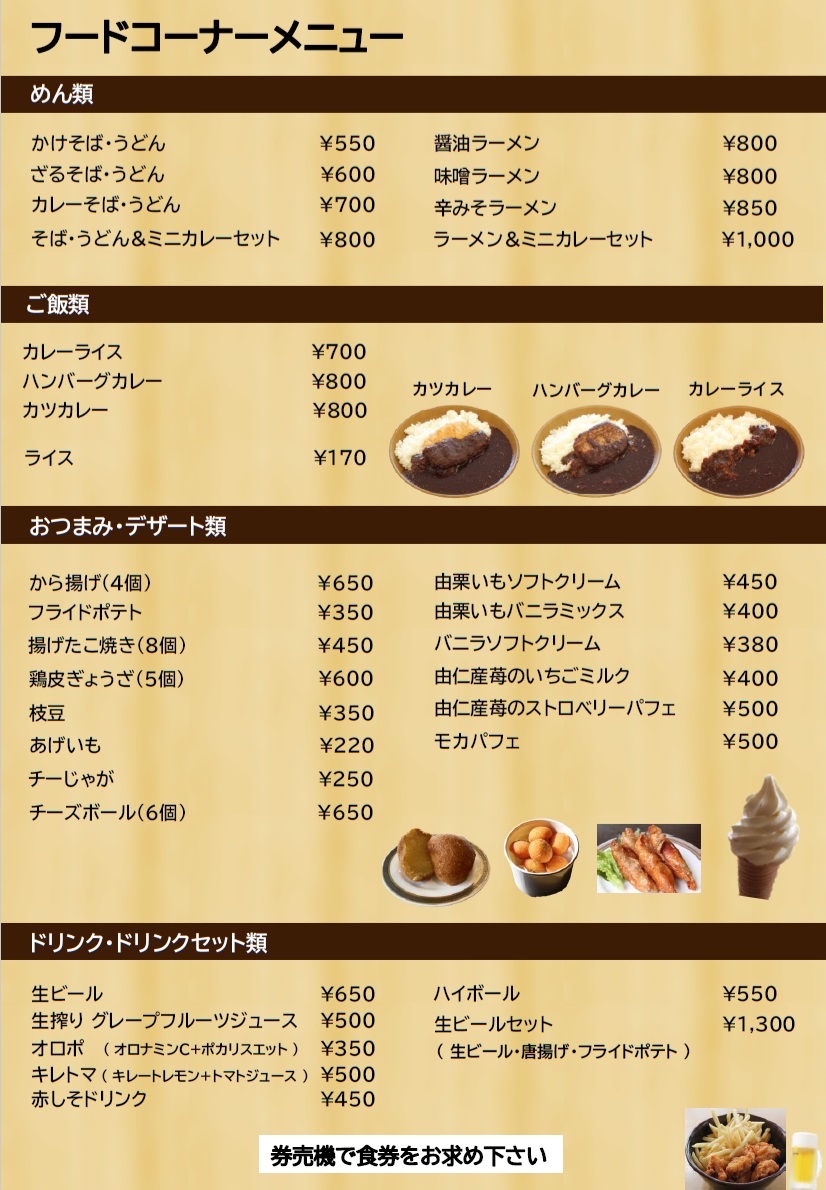 フードコーナーのお食事と日帰り入浴のセットプラン