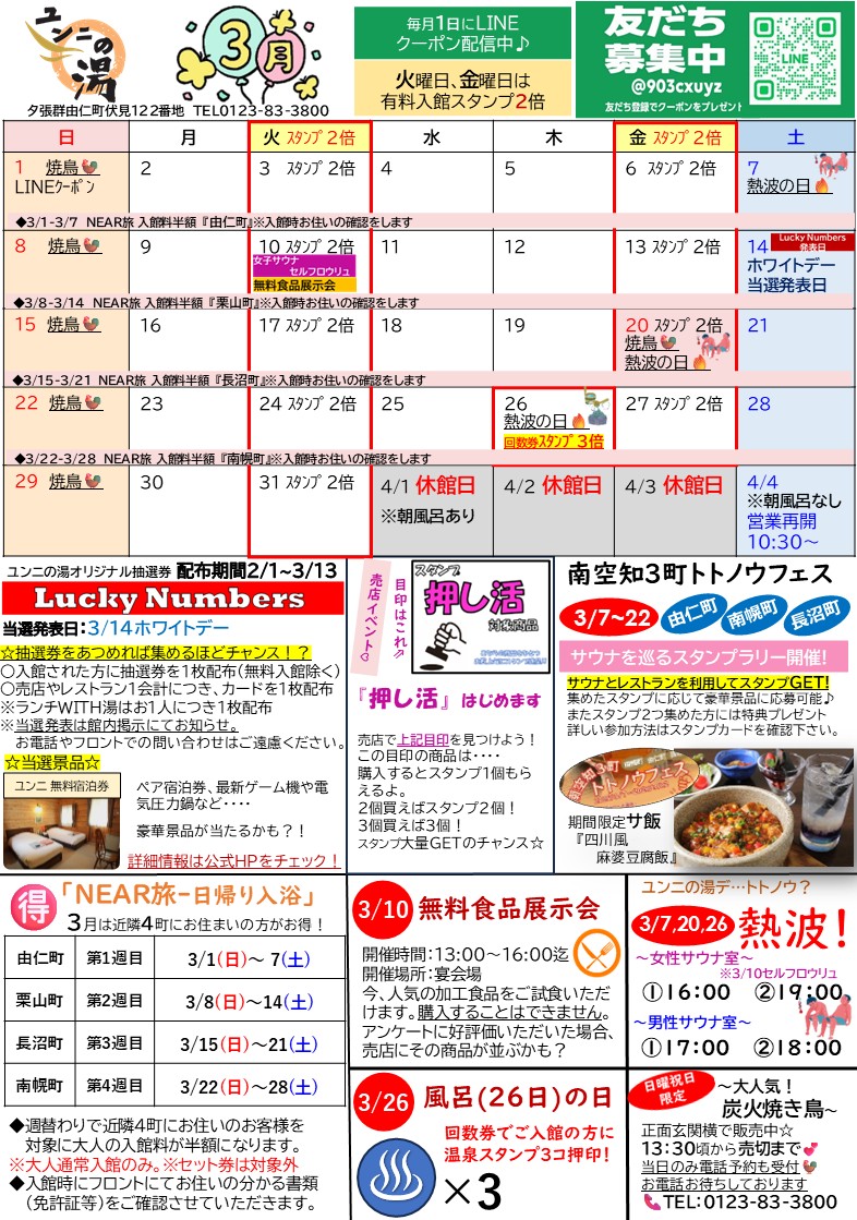 ユンニの湯では様々なイベントを企画してお客様のお越しをスタッフ一同心待ちにしております。